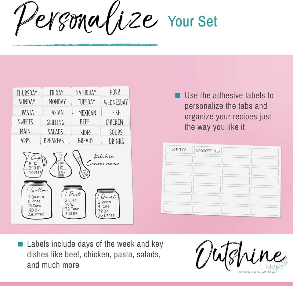 Easily stick labels onto the tabbed portion for your unique recipe collections.