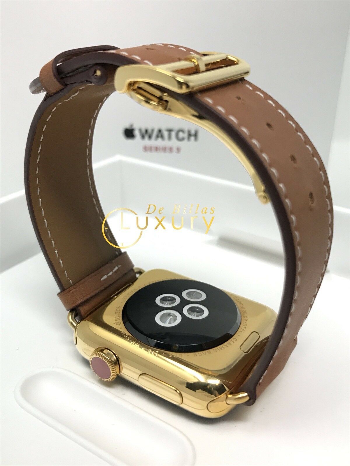 - 42MM Apple Watch SERIES 3 24K with Brown Leather Band