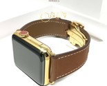 - 24K Gold Plated 42MM Apple Watch SERIES 3 Brown Leather Band Custom Wooden Box