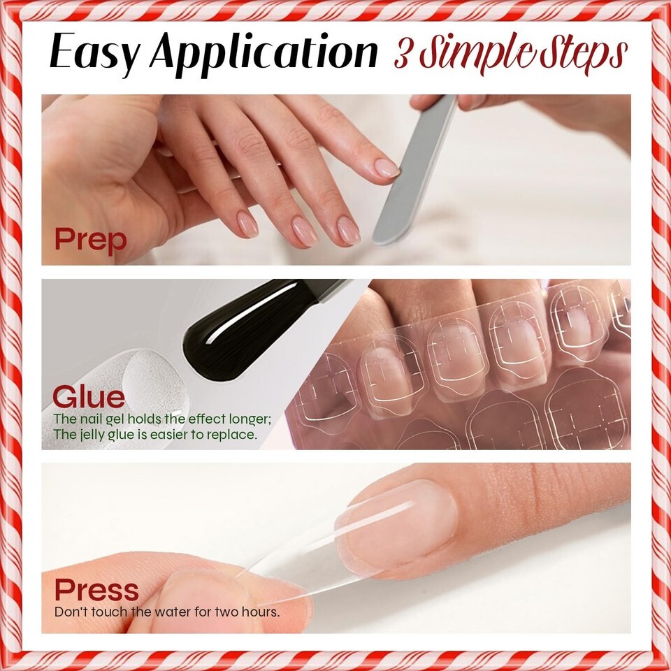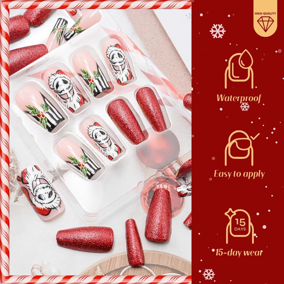 Multi-Situation Use: The fake nail set is perfect for parties, dates, proms, and other occasions. When Christmas is coming, you can use these fake nails with Christmas elements to brighten up your eyes during the festival.