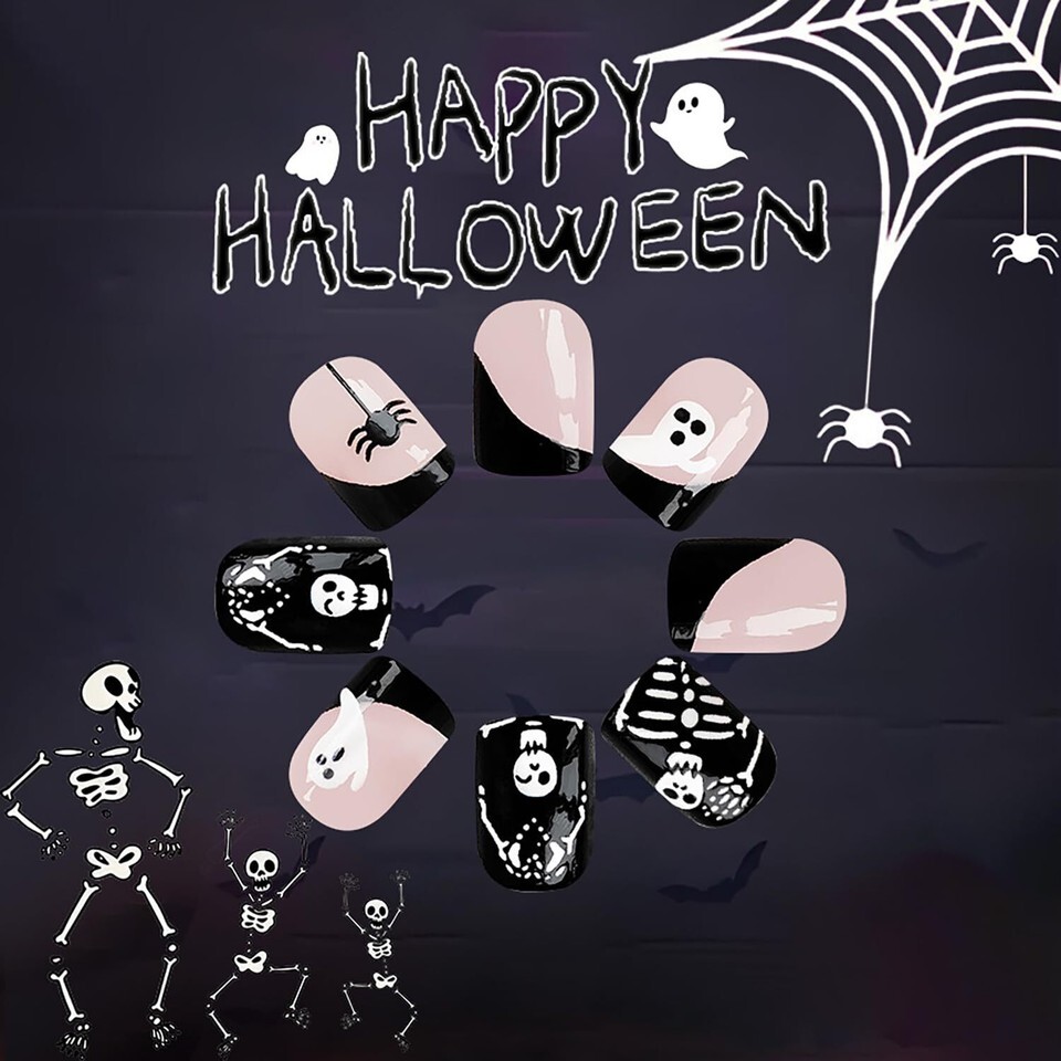 Exquisite DesignThese french tip false nails adapt ghost face and spider pattern decoration, It Can better help you showcase your uniqueness in holidays and daily life.