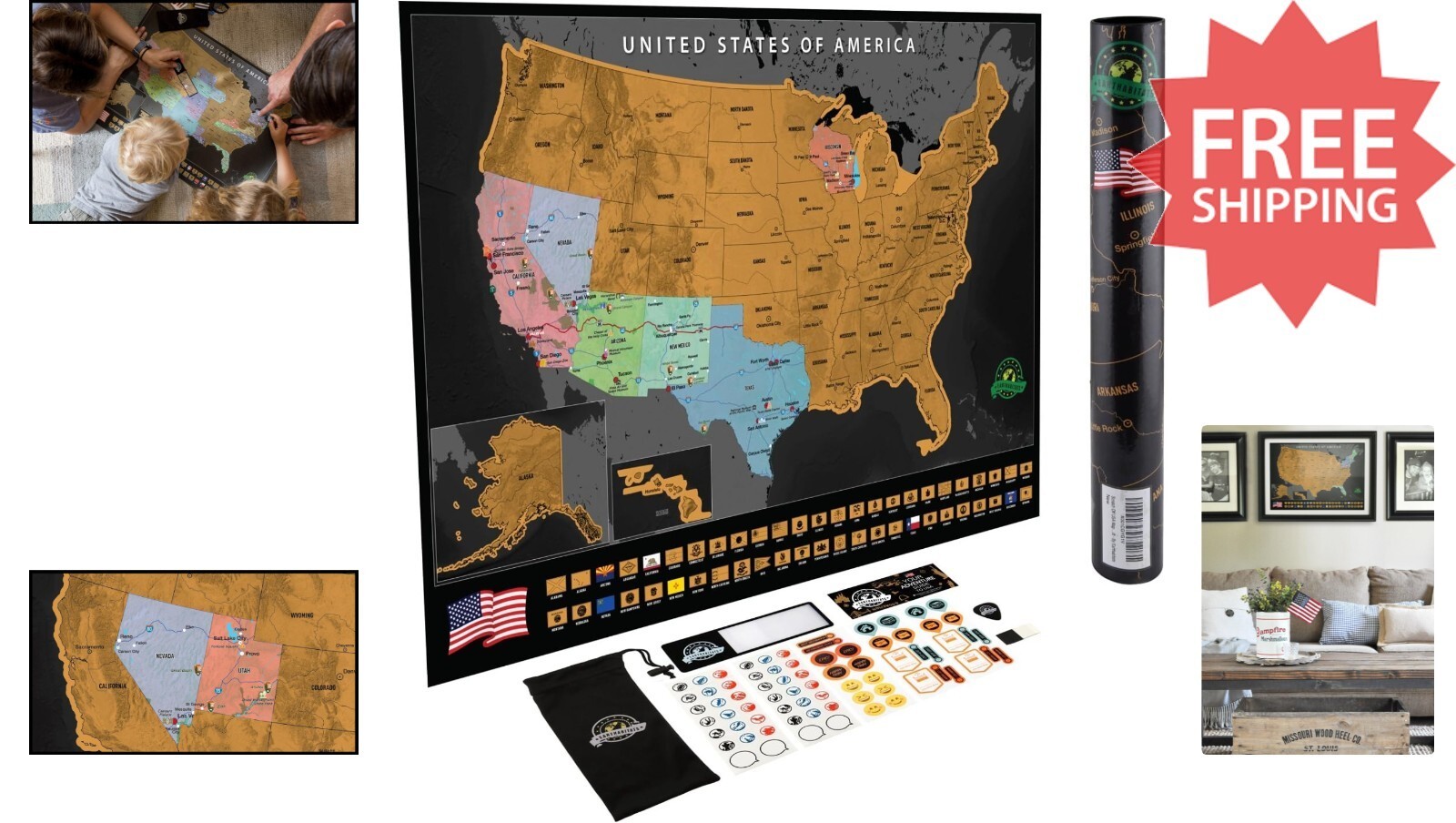 - 24x17 Scratch Off Map of America – Travel Tracker with Gift Ready Packaging