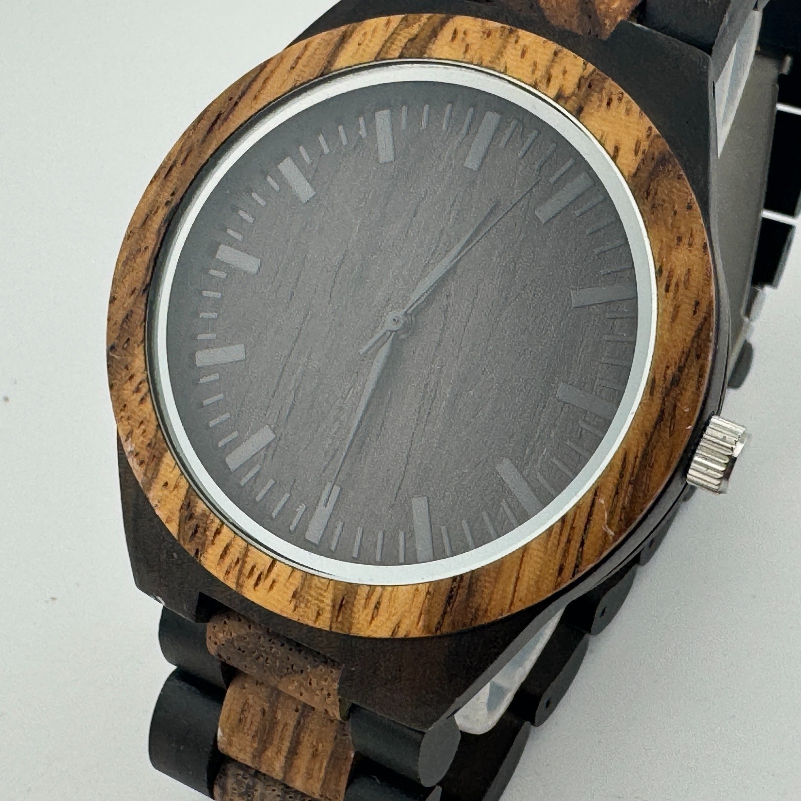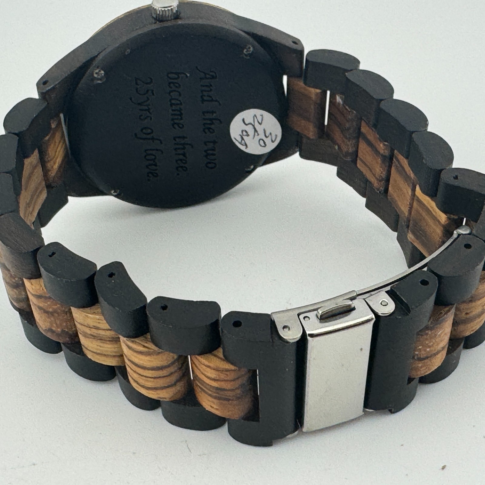 25 YRS Love Quartz Watch Men 44mm Dual Tone Solid Wood Analog New Battery 8.25"