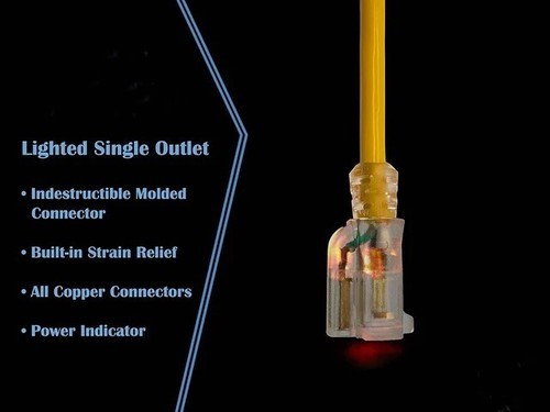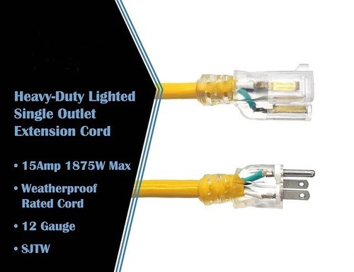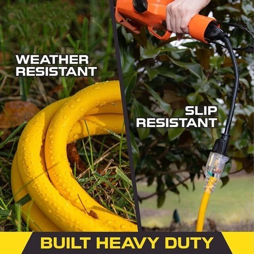 25 ft 12/3 SJTW Heavy Duty Outdoor Extension Cord, light indicator, waterproof.