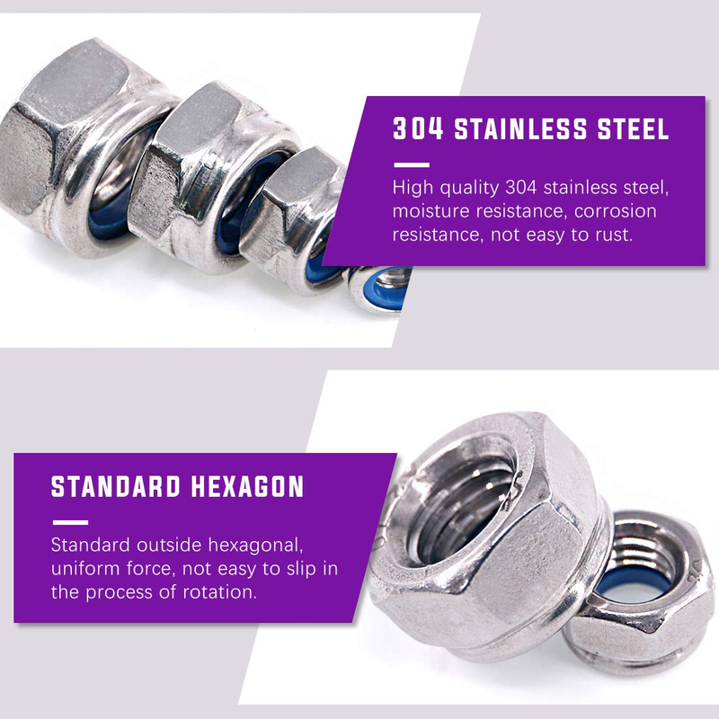 High-Quality Construction: Made with durable 304 stainless steel, these lock nuts boast strong anti-rotation ability, ensuring they remain securely in place even under vibration and torque. They resist loosening and maintain clamping strength, offering reliability for both professional and DIY projects.