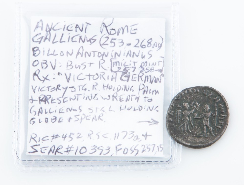 - 257-258 Roman Billo Antoninianus Coin XF Gallienus Victory RIC-452 Sear-10393...