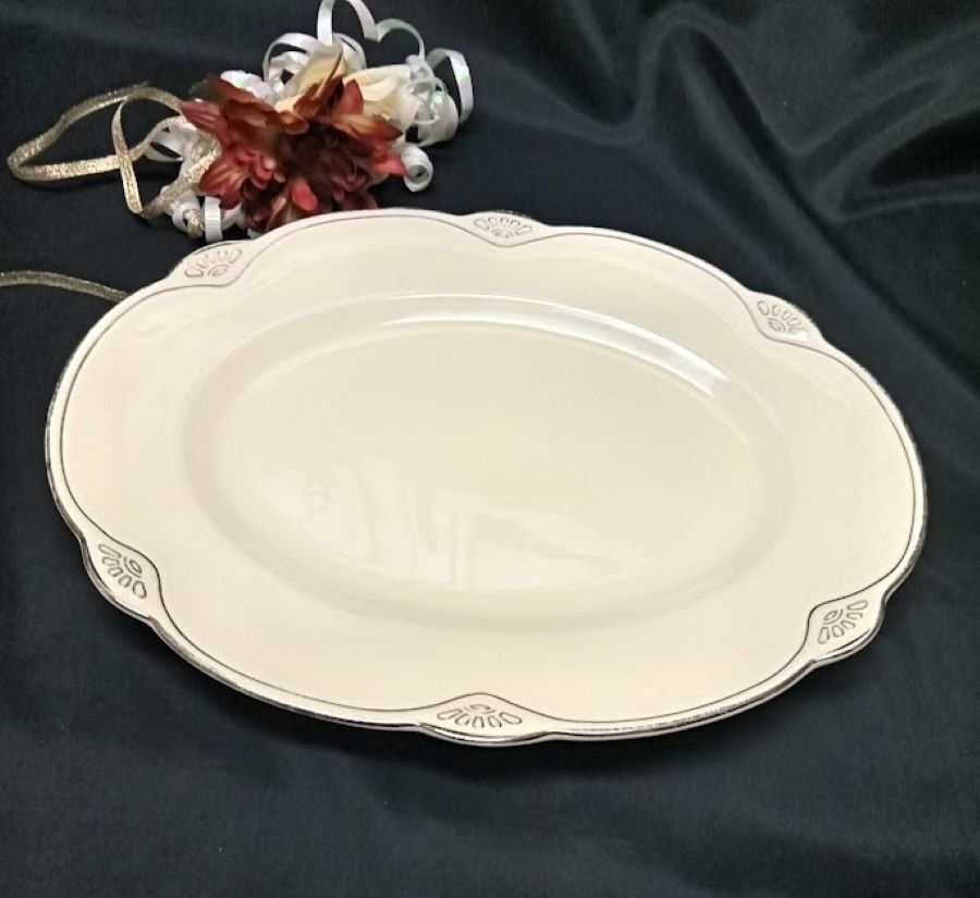 2590 Homer Laughlin W134 Platinum Five Petal Marigold Platter