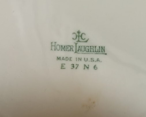 Up for your consideration is a lovely antique 11" Homer Laughlin W134 Platinum Five Petal Marigold Platter. It has a backstamp mark of E 37 N 6. So I believe this piece was piece was made in June 1937. This pattern was first introduced by Homer Laughlin on November 16, 1933 in various colors. This pattern was discontinued after 1952.