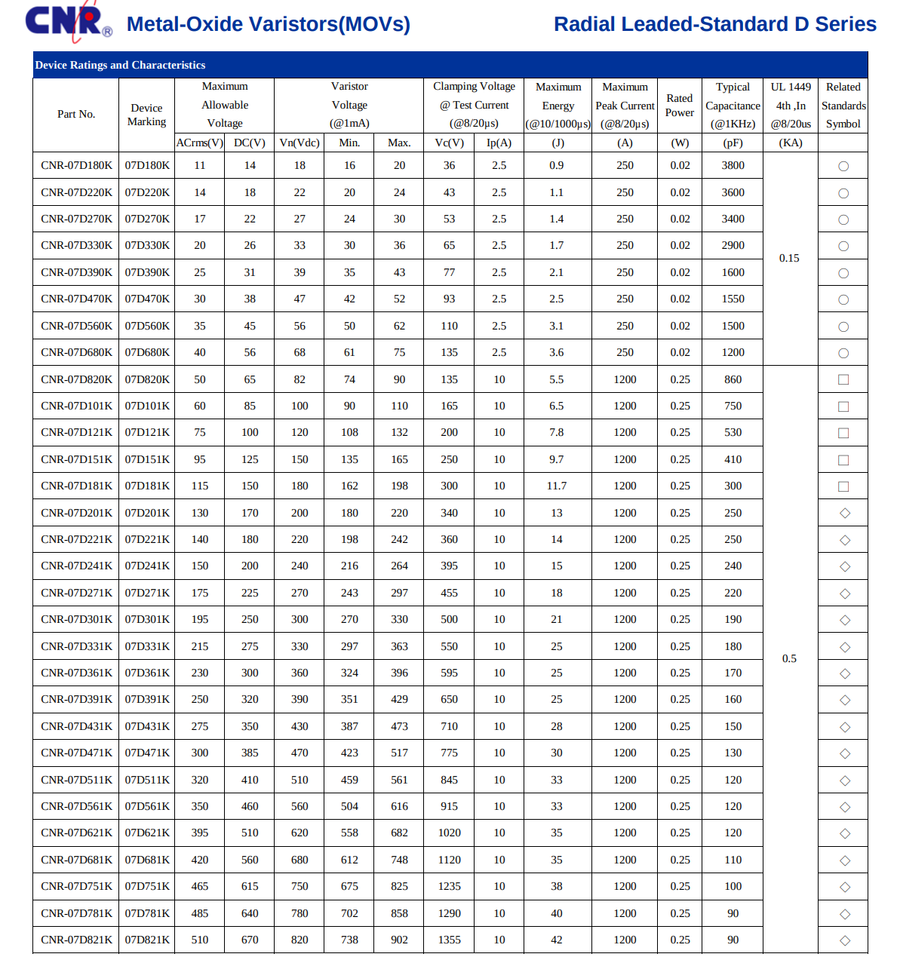 CNR-07D471K CNR MOV Disc Varistor 7mm 470V