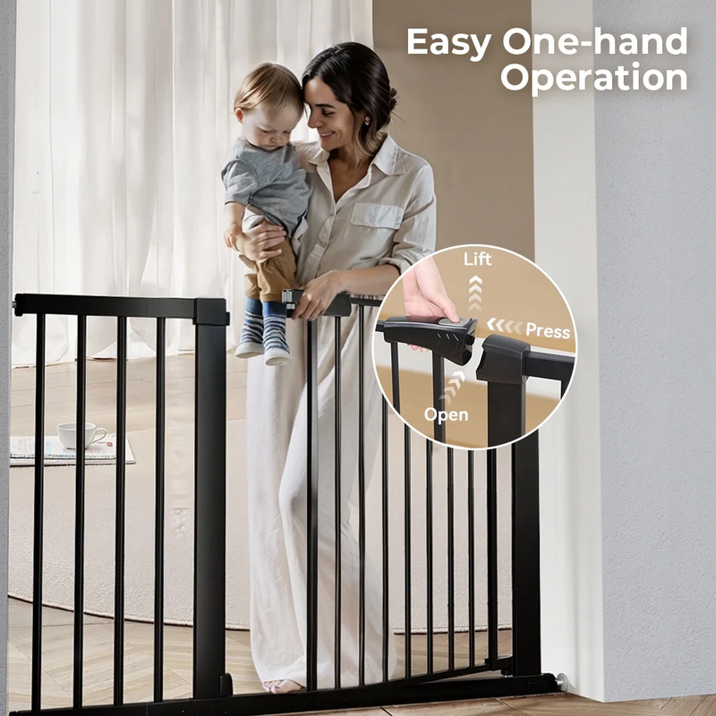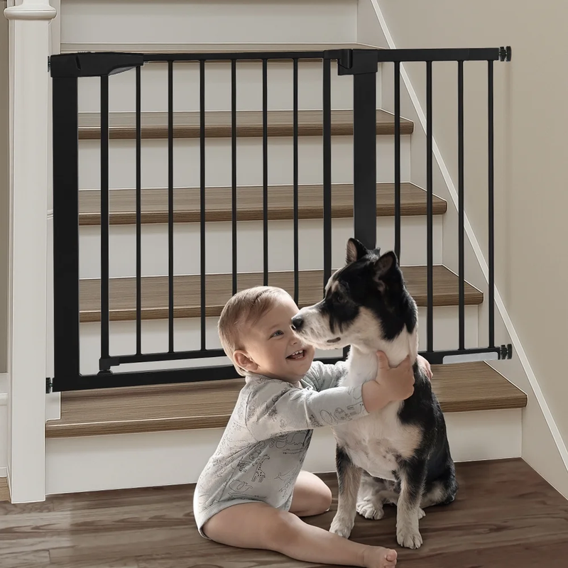29.5"-43.3" Extra Wide Safety Baby Gate for Stairs Doorways, Top of Stairs, Black