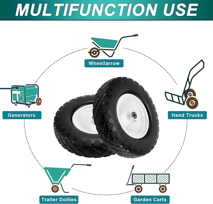 WIDE USAGE : The 4.80 4.00-8 wheelbarrow wheels are usable with wheelbarrows, contractor grade unicycles, garden trailers, spreaders, roofing equipment, etc. When a 16 pneumatic tires blowout occurs, there is no need to buy a new Cart. Only need to replace the4.80/4.00-8" tire and Wheel , you can use it normally!