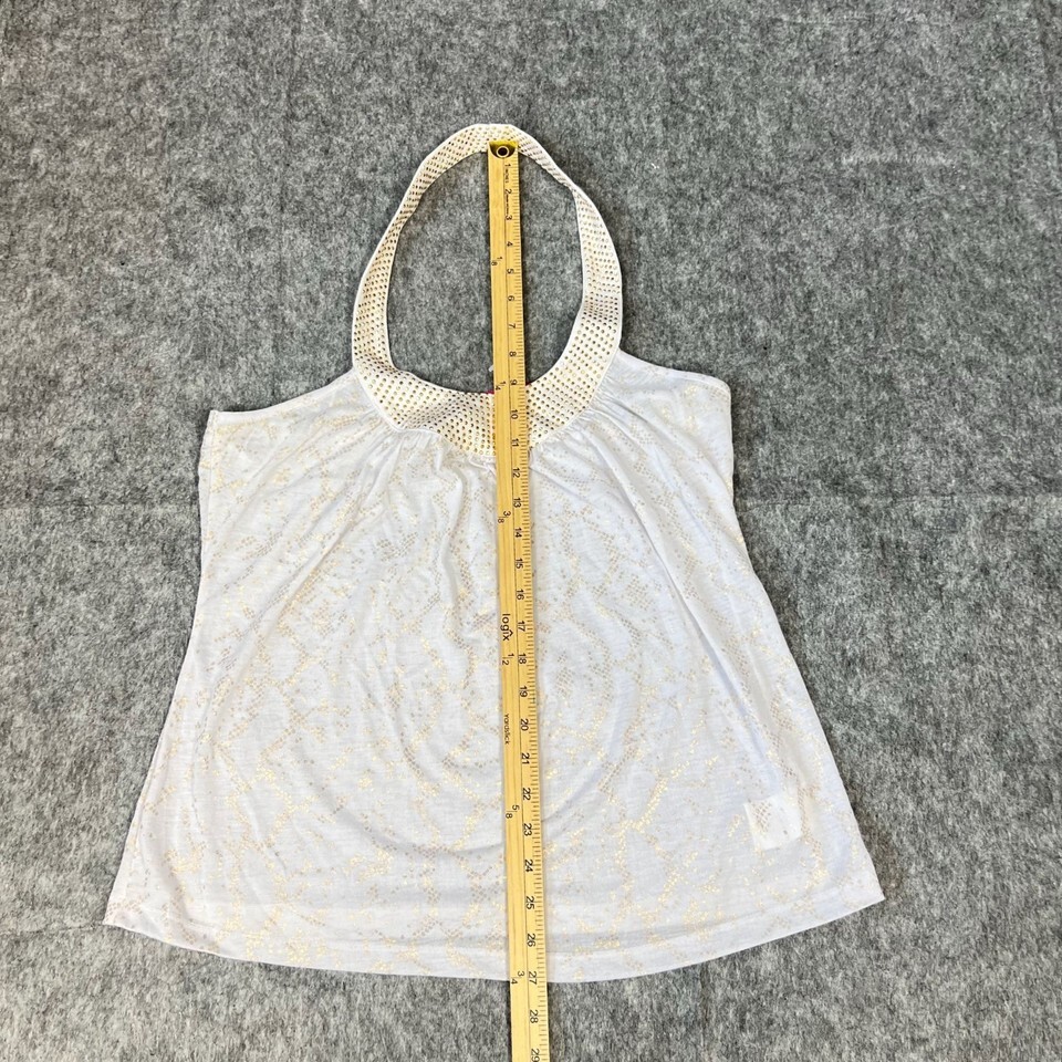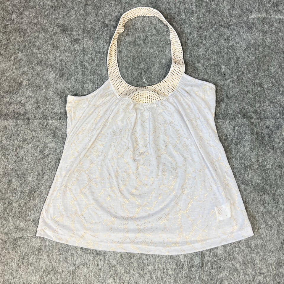 - 2b Bebe Womens XL White Gold Studded Halter Top Python Foil Sleeveless NWT