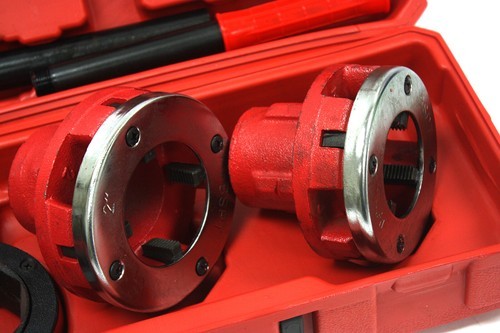 - 2pc BSPT Plumbing Hand Ratchet Pipe Threader 1-1/2" & 2" Die Head Alloy Dies