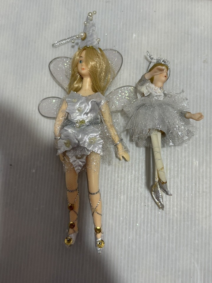 - 2pc Vintage Silvestri Hanging Silver Fairy Pixie , Dancer ChristmasOrnaments
