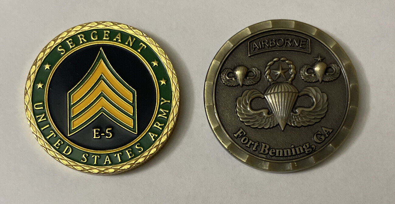 2pcs 507th Airborne School Jump Wing Badge E-5 Sergeant Coin US Army RARE.