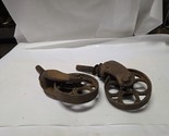 Pair of Standard Pressed Steel Co. Cast Iron Factory Cart- Caster Wheels Ind. Decor they are around 6" x 1-5/16" x 1" shaft. Industrial Steampunk Decor
