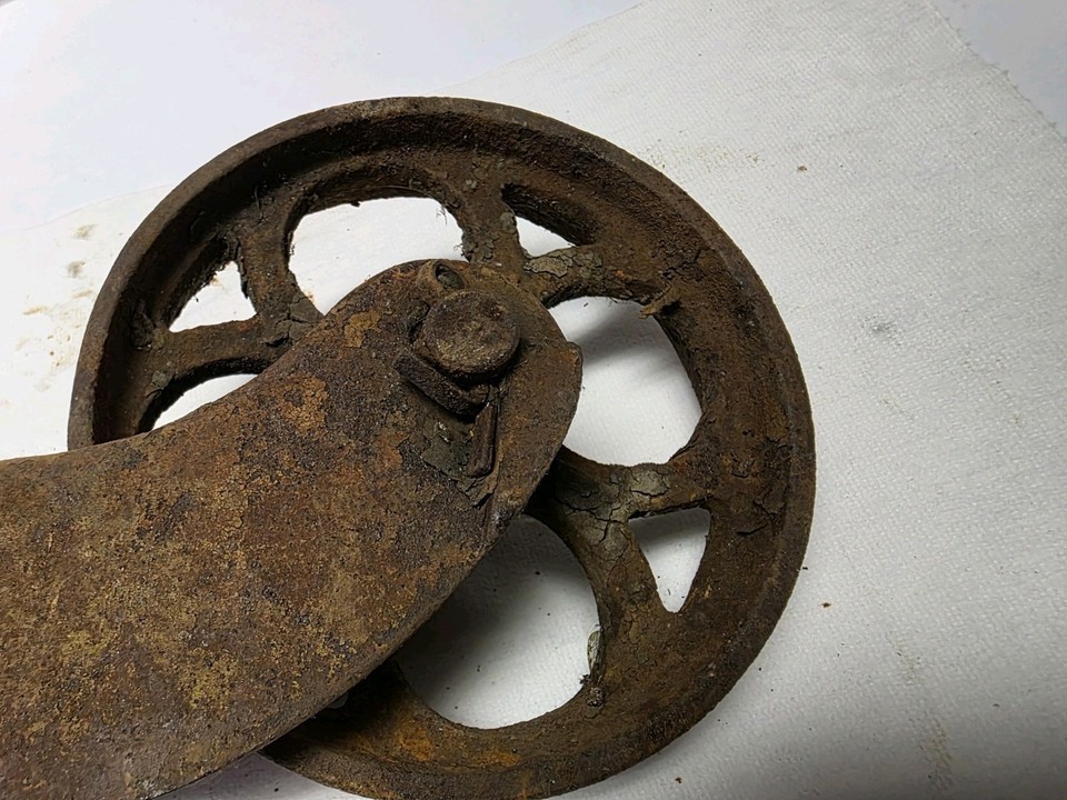 - 2pcs Standard Pressed Steel Co. Cast Iron Factory Cart Casters Wheels Ind. Decor