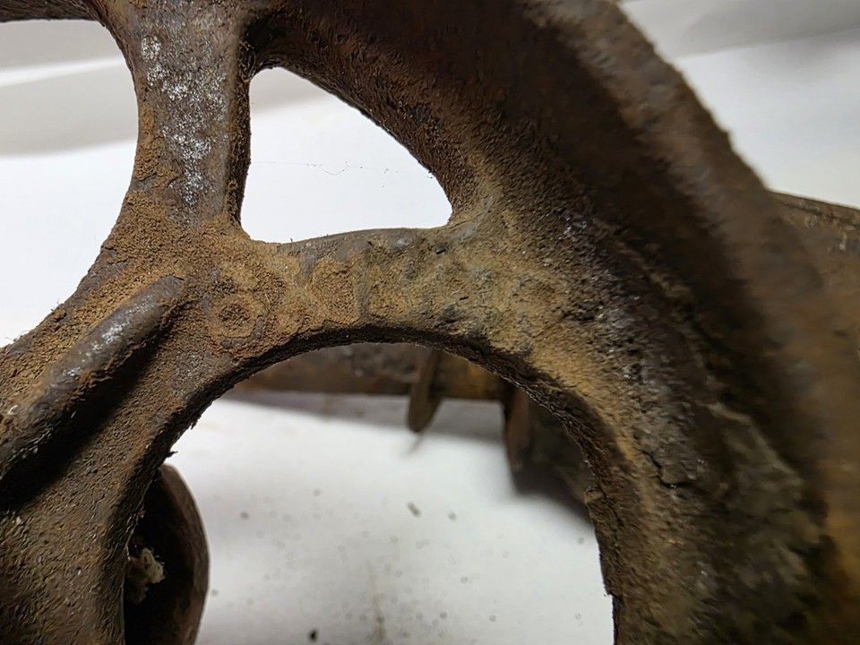These are from an old steel factory cart that the larger wheels that were on the cart were embossed with letters that read Standard Pressed Steel Co. Jenkintown PA.