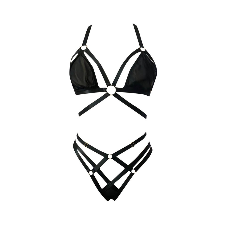 - 2piece Sexy Hollow Webbing Sexy Underwear Lingerie Set For W