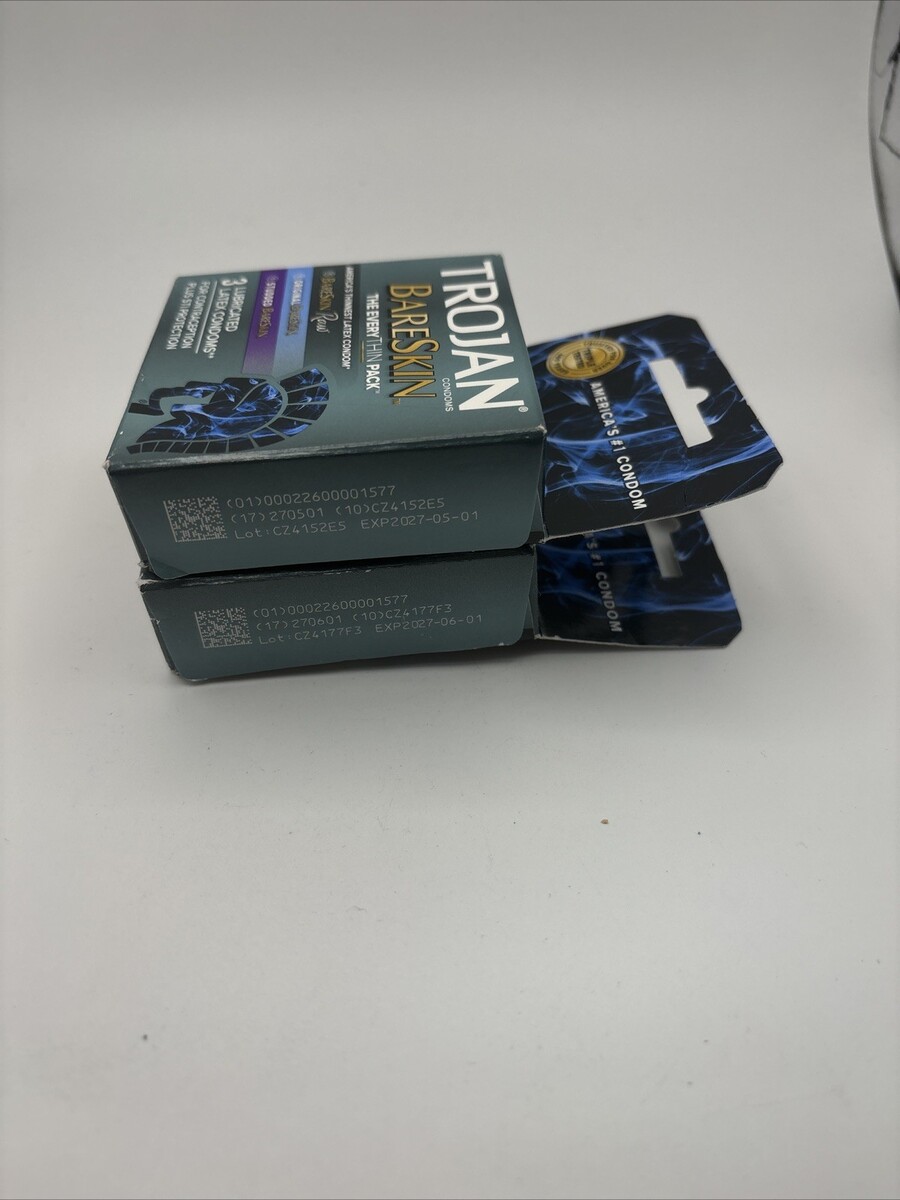 - 2pk Trojan Bareskin EveryTHIN Original Raw Studded Thinnest Lube Latex Condoms