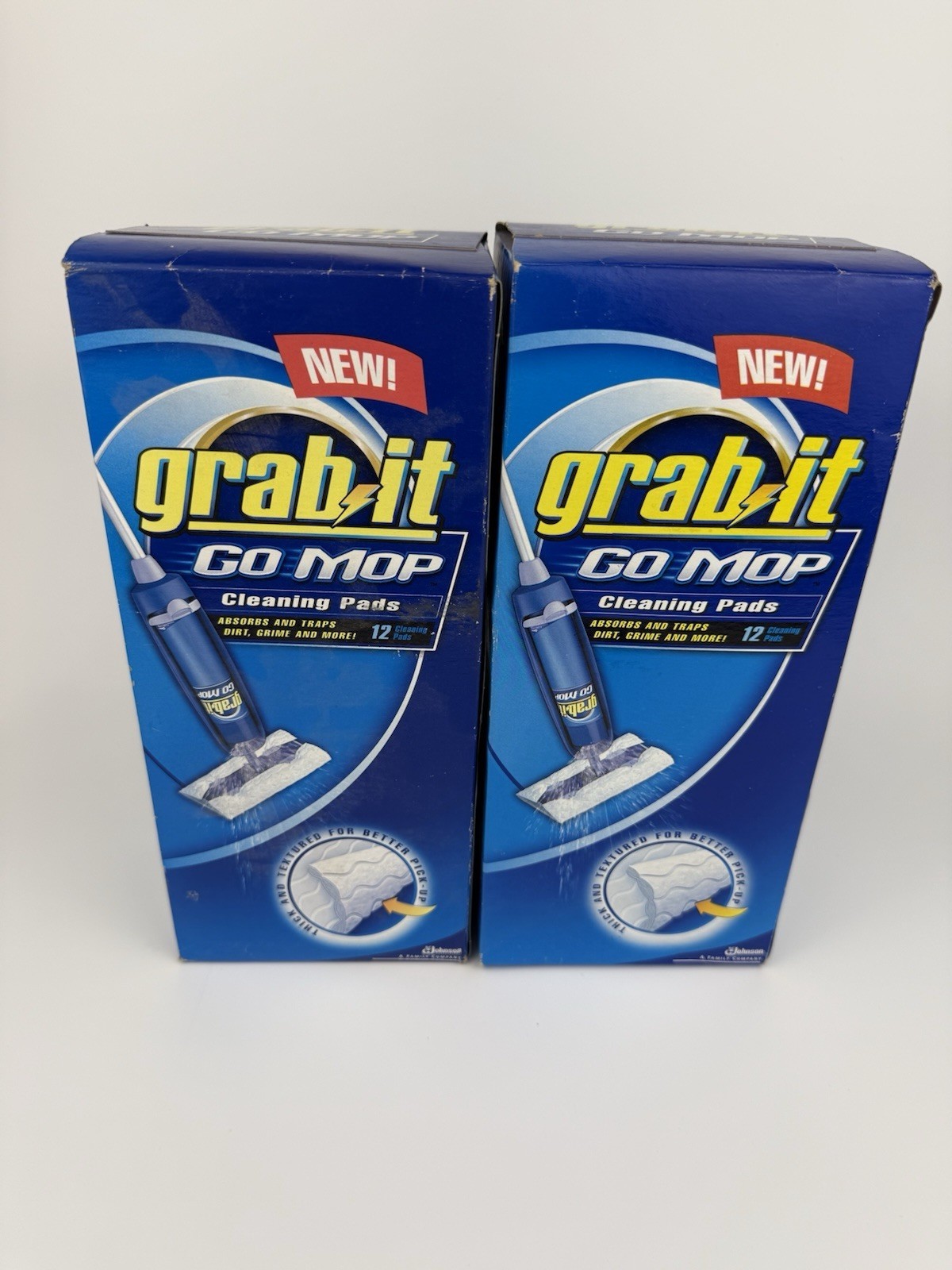 - 2x GRAB IT GO MOP Mopping System Cleaning Refill Pads 24 Total