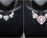 - 2x Necklace Lot Blue Purple Pink Rhinestone Pastel Teardrop Aurora Borealis