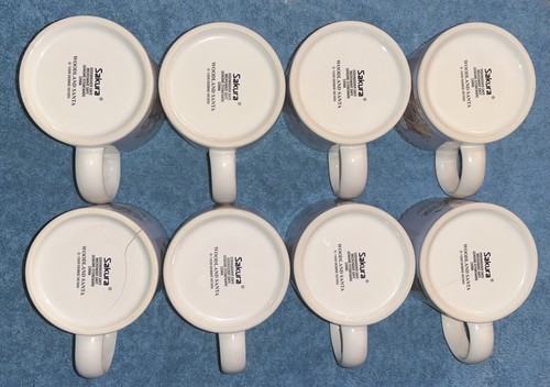 2x Set 12oz. Debbie Mumm WOODLAND SANTA 8 Ceramic Coffee Mugs SAKURA See Dscrp