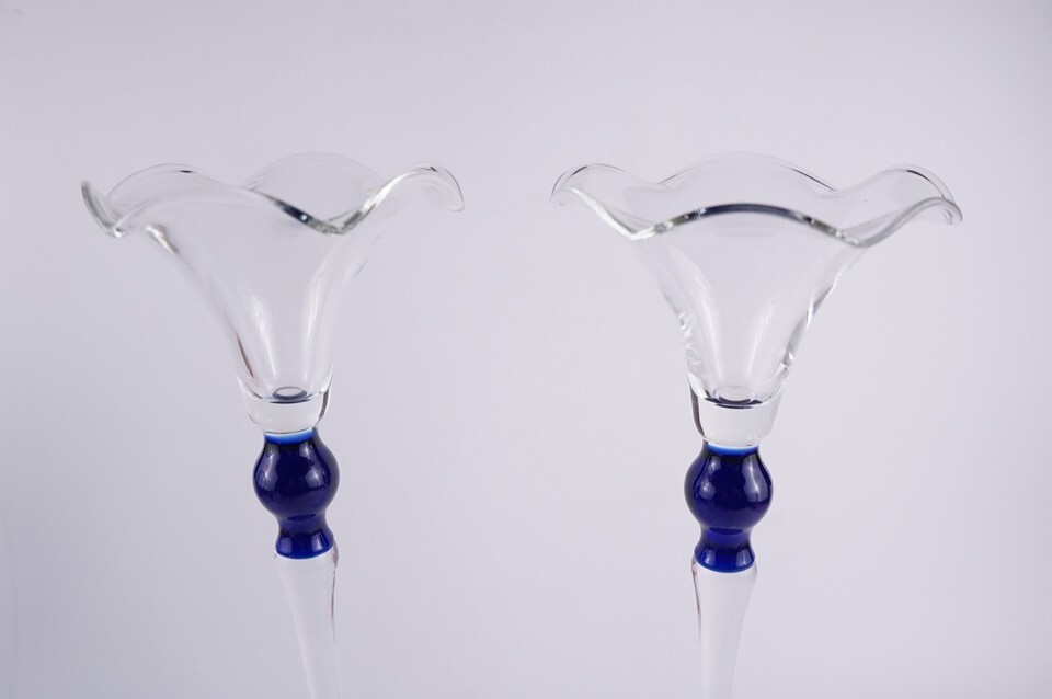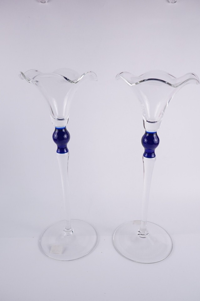 - 2x VINTAGE CANDLE HOLDER GLASS COBALT BLUE 12inch