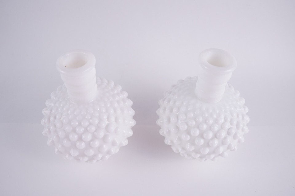 - 2x VINTAGE FENTON HOBNAIL FRENCH MILK GLASS VASE