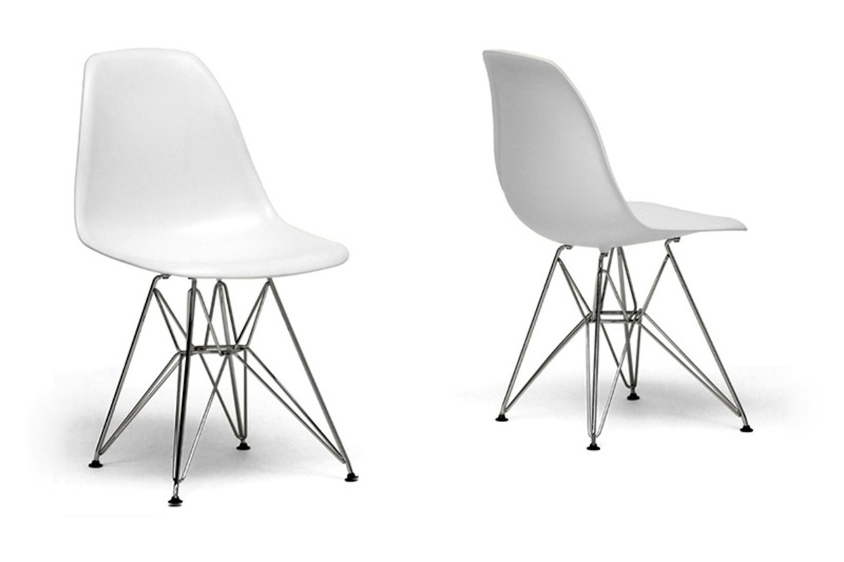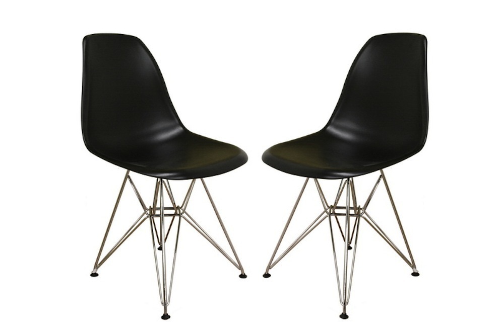 SET OF 2 WHITE OR BLACK EIFFEL PLASTIC SHELL PYRAMID DINING SIDE CHAIRS WITH STAINLESS STEEL LEG BASE RATED FOR COMMERCIAL RESTAURANT USE