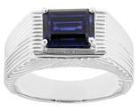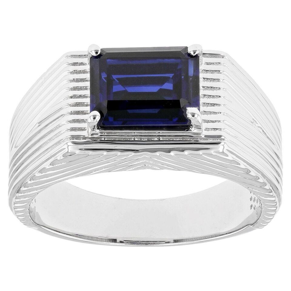 - 3.08 Ctw Emerald Cut Blue Sapphire 14K White Gold Over Solitaire Ring For Men's