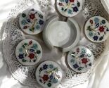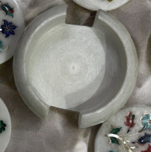 - 3.5" Natural Antique Floral Arts Inlay Gemstone Work White Marble Coaster Set