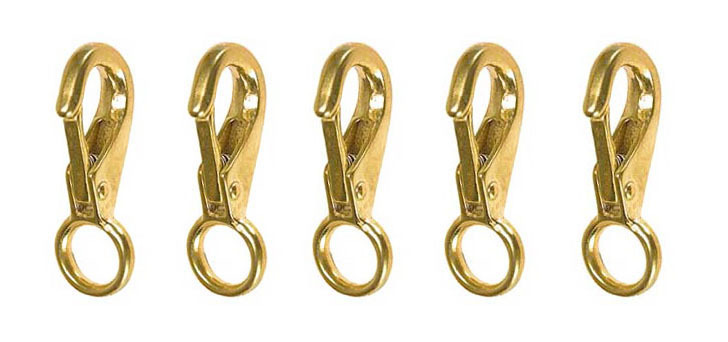 Lot of (10) solid brass fixed eye heavy duty spring loaded snap hook. Snaps measure 3/8" x 2-1/4"