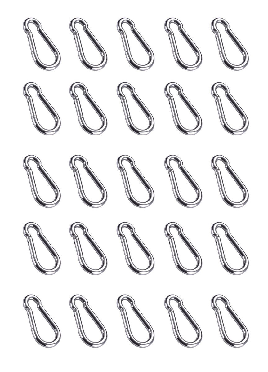 Lot of (10) zinc-plated spring snap carabiner clips. Snaps measure 3/8" x 4".