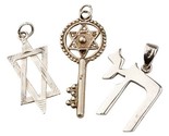- 3 Argent Sterling Juif Pendentifs: David Bouclier, " Chai " (18) & Bouclier Clé