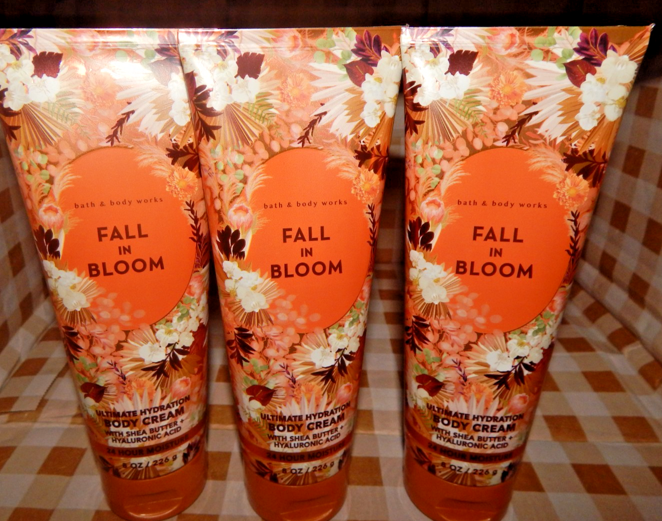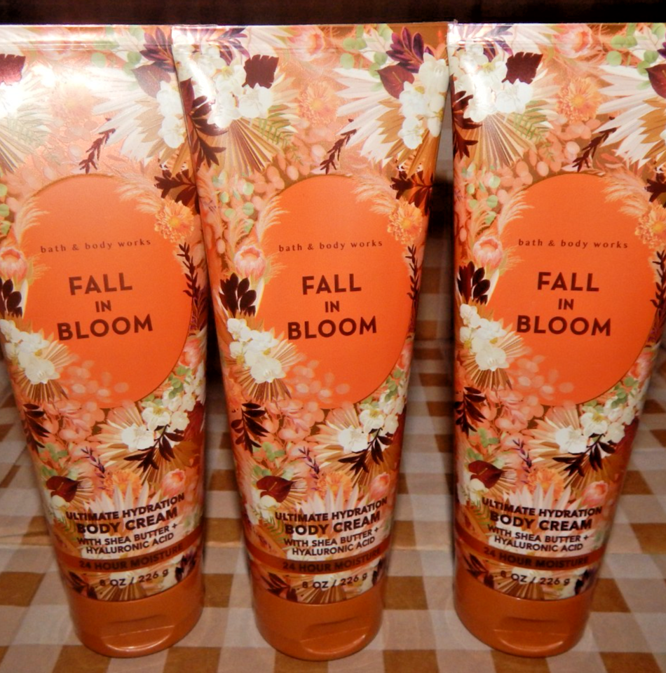 - 3 BATH & BODY WORKS FALL IN BLOOM HAND & BODY CREAM 8 OZ ULTRA SHEA 24 HR MOIST