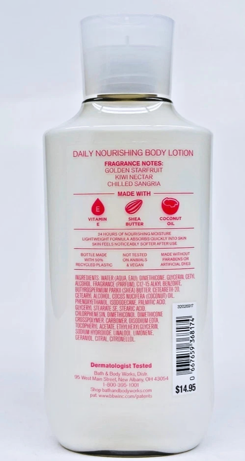 - 3 Bath & Body Works STARFRUIT SANGRIA 24HR Moisture Body Lotion Cream 8 oz