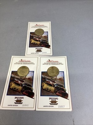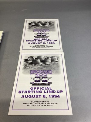 You?re getting 3 programs from the Indianapolis motor speedway in 1994, 2 starting line up sheets and 3 commemorative commemorative coins from the nascar Winston cup series. Everything is in excellent condition.