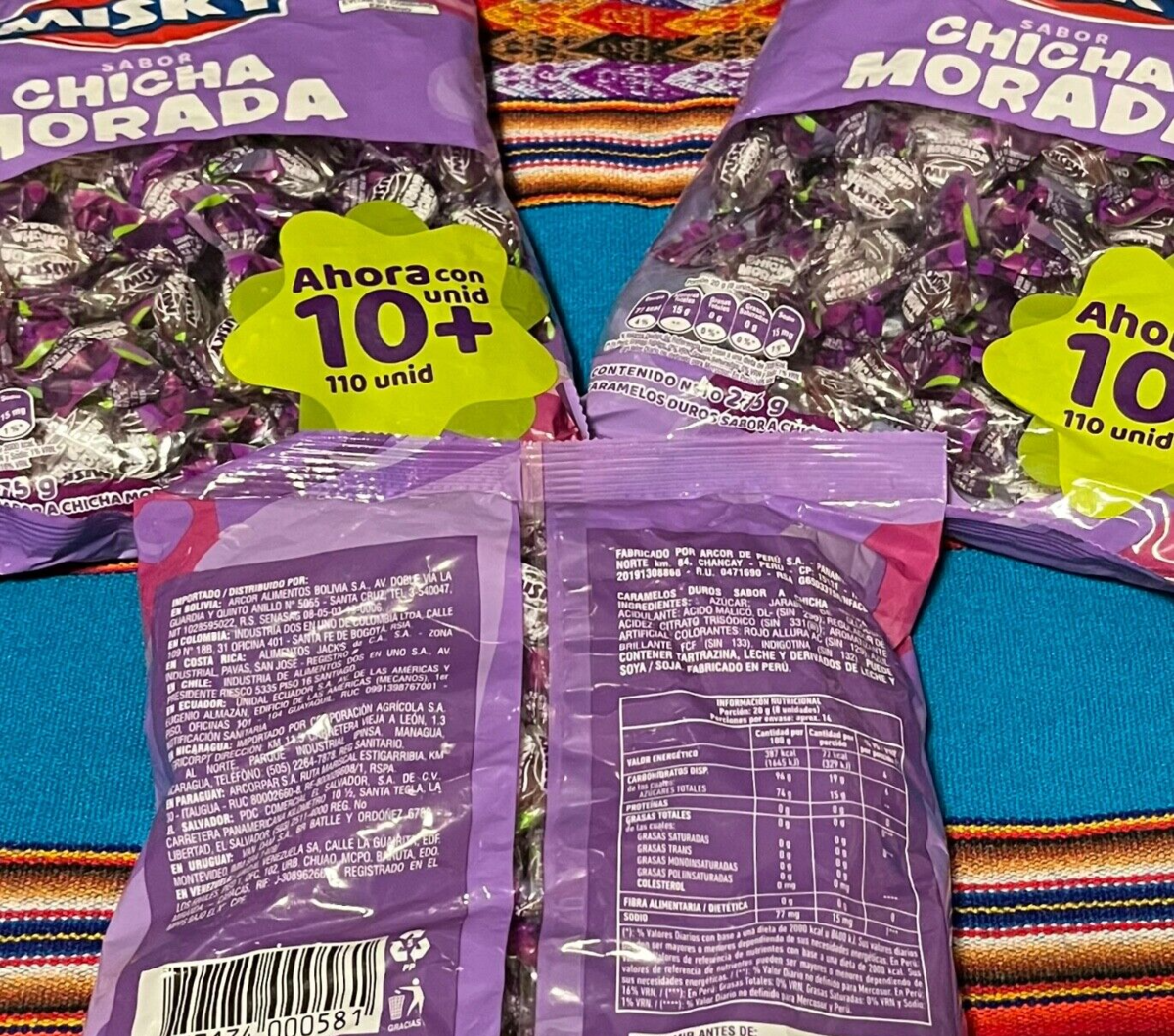 3 Sealed Bag of Chicha Morada - Purple Corn Flavor Candies - 110 units - Misky Made in Peru