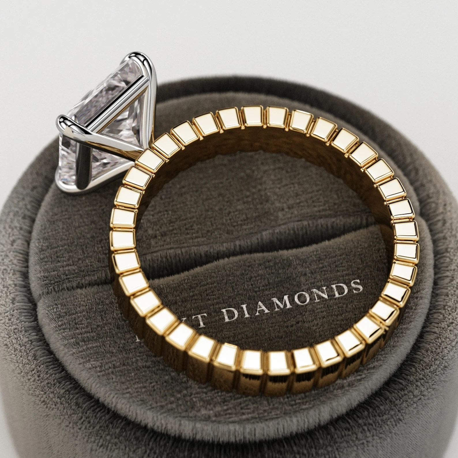 - 3 Ct Princess Cut Lab Grown Diamond E VS1 Thick 3.5MM Cigar Band Engagement Ring