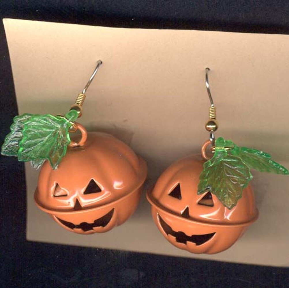 SMILE FACE JINGLE BELL Funky EARRINGS - Halloween Pumpkin Charm Fall