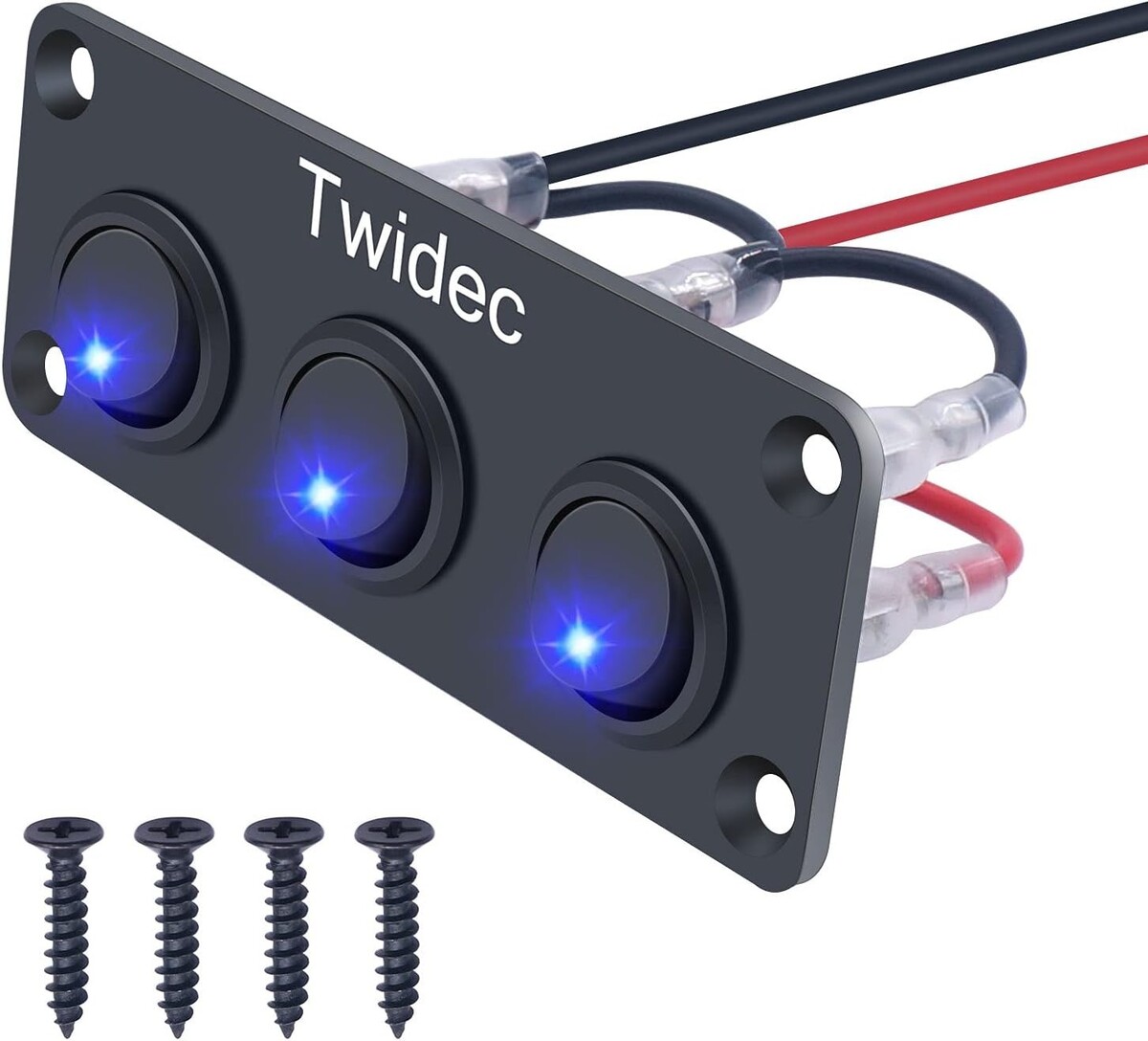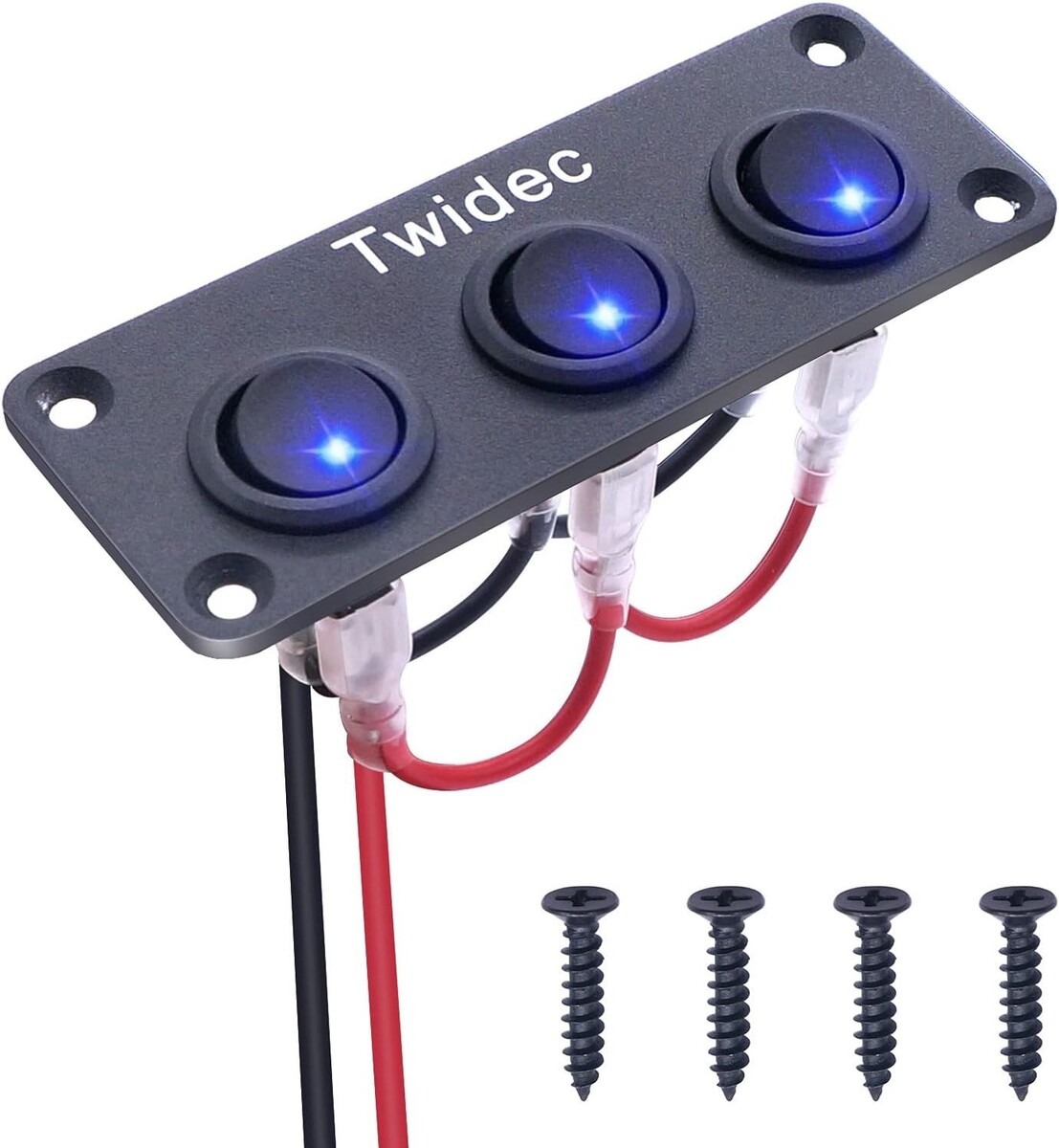 - 3 Gang Rocker Toggle Switch Panel with 12V DC Round Dot Lighted 20A 3 Pins ON