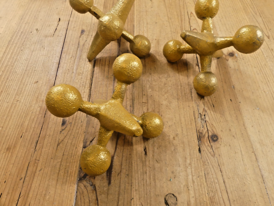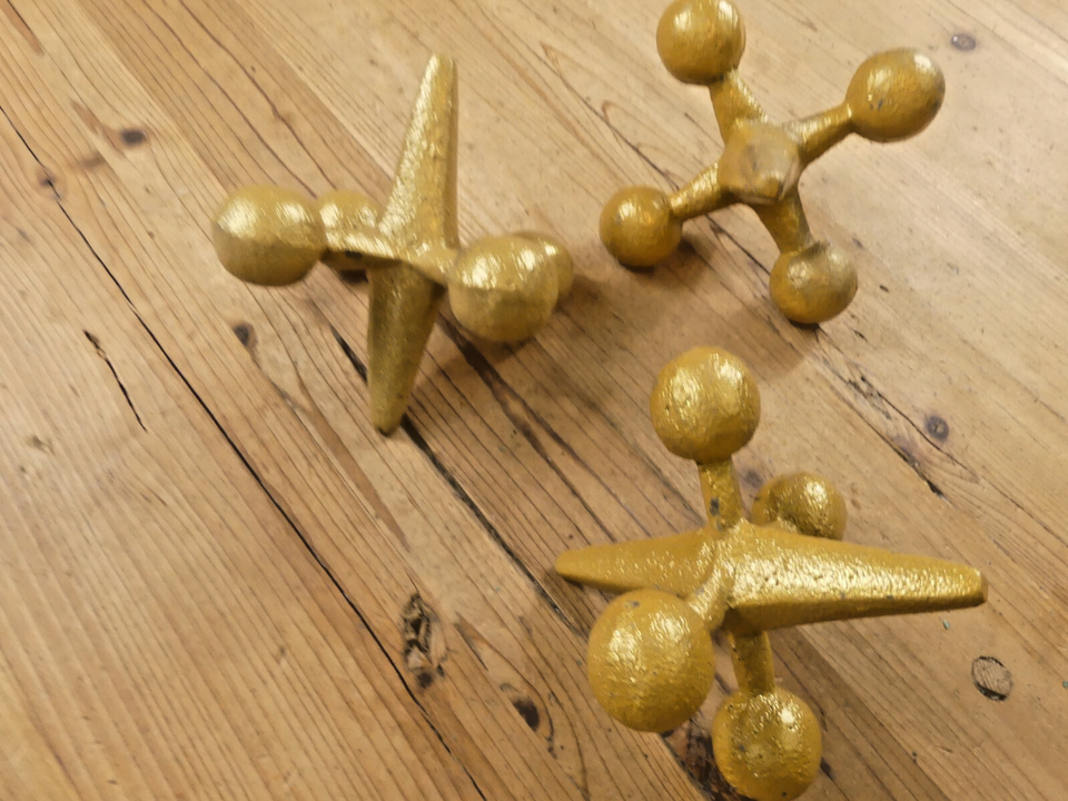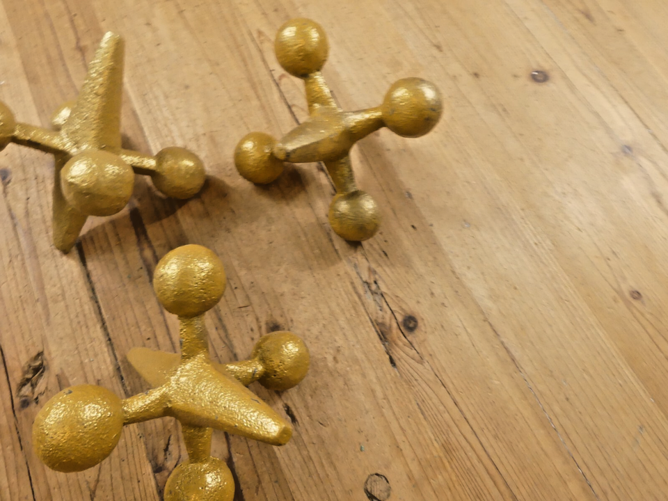 3 LARGE JACKS CAST IRON GOLD COLOR 5 1/2” Wide Book Ends Decor Weight Toy Decor