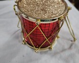- 3" MINIATURE PLASTIC RED GLITTERY DRUM CHRISTMAS ORNAMENT. GOOD CONDITION.