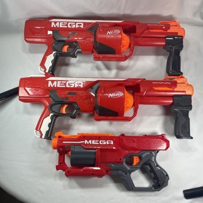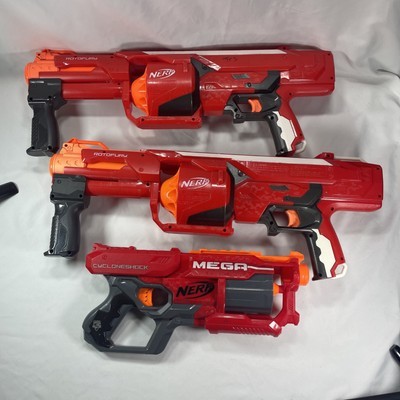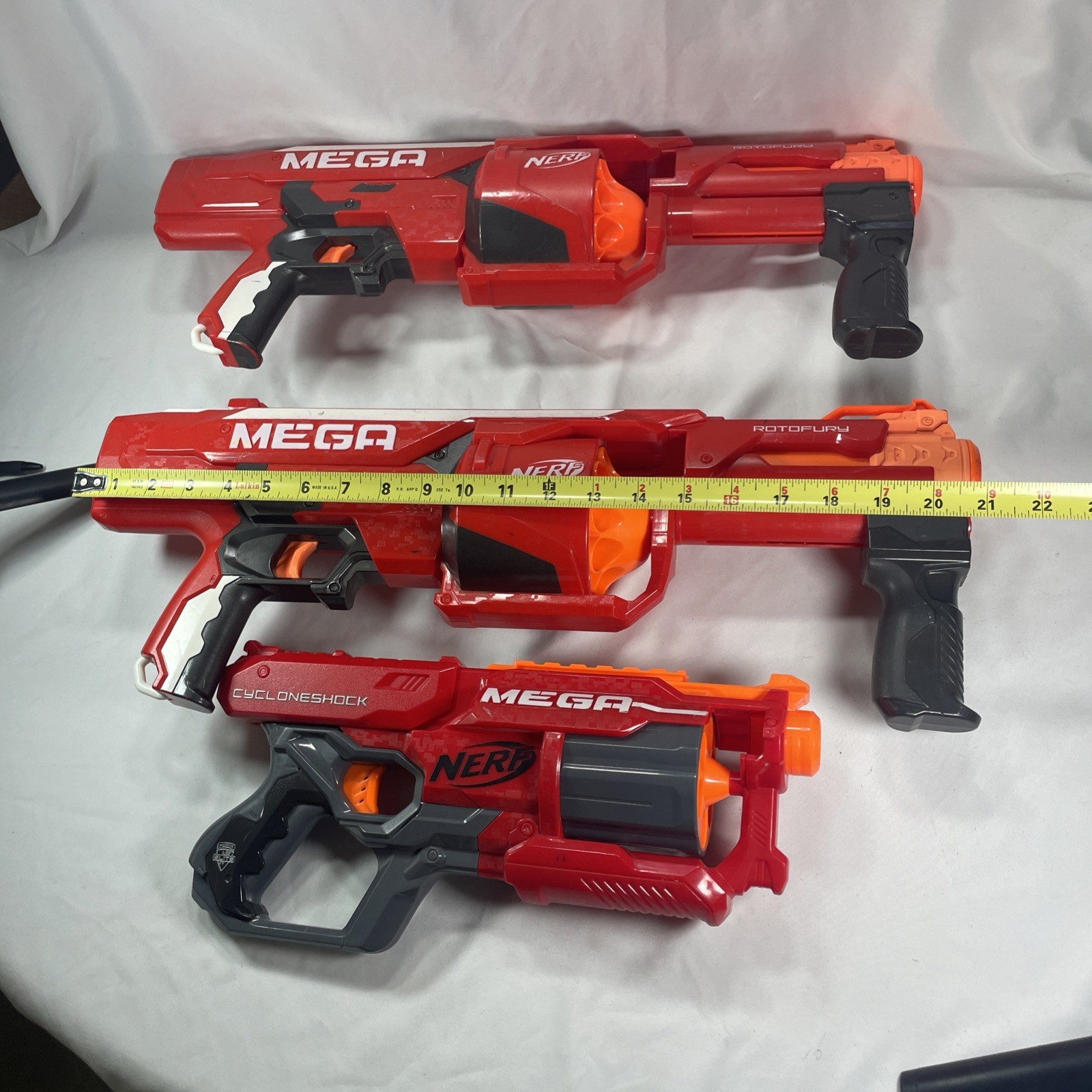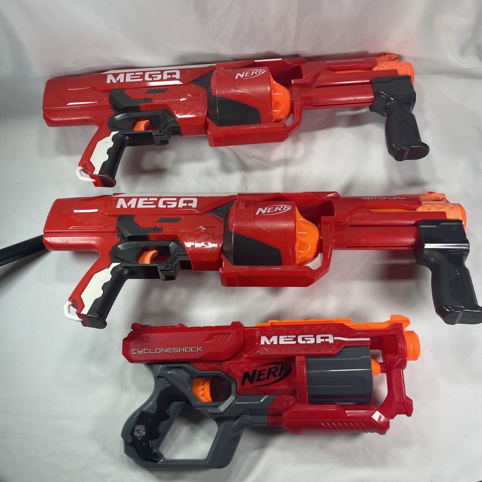 3 NERF GUNS Mega CYCLONESHOCK & ROTOFURY Series Pre Owned - WORK - (NO Bullets)