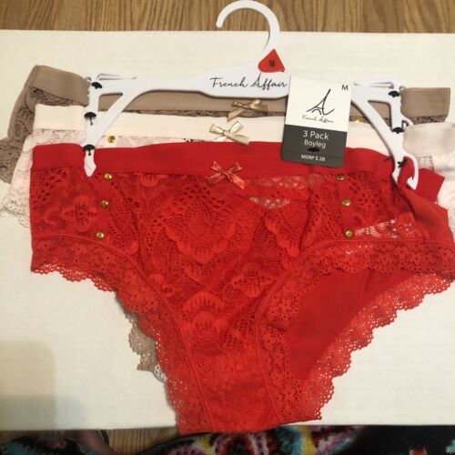 3 NEW FRENCH AFFAIR Bovleg lace trim HIPSTER PANTIES size Medium M . Condition is New with tags. Shipped with USPS First Class.