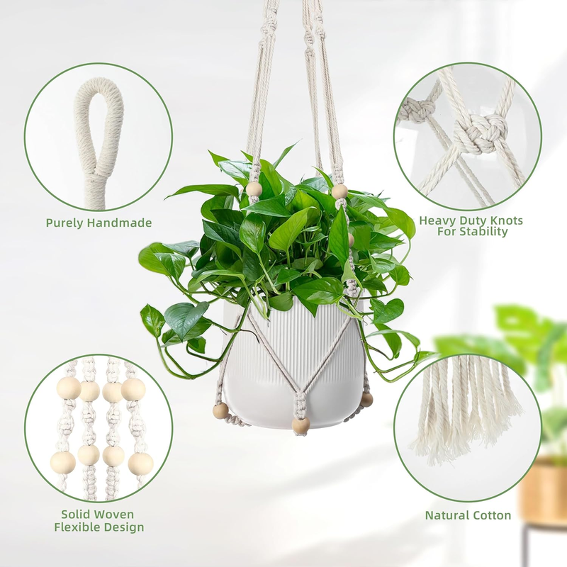 - 3 PCS Macrame Plant Hanger Indoor Hanging Planter Basket with Wood Beads Plants