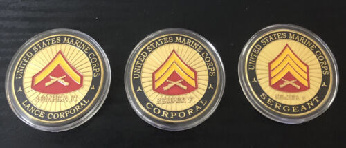 3 PCs USMC RANK Lance Corporal Sergeant SSG challenge Coin Marines US