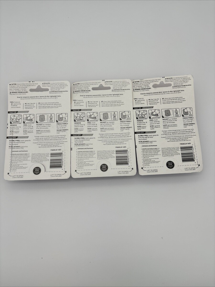 - 3 Pack 3M Command Adjustables Clear Repositionable 14 Hooks 30 Strips each