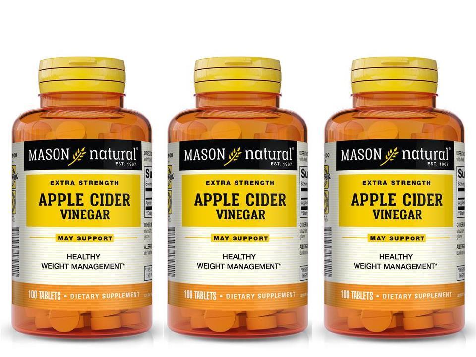- 3 Pack APPLE CIDER VINEGAR*04/2027* 3 x 100 = 300 Tablets Mason Natural